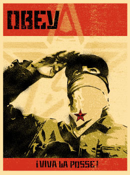 Frank Shepard Fairey (born February 15, 1970) is an American contemporary graphic designer and illustrator who emerged from the skateboarding scene. He first became known for his "Andre the Giant Has a Posse" (OBEY) sticker campaign. Fairey created the "Andre the Giant Has a Posse" sticker campaign in 1989, while attending the Rhode Island School of Design (RISD). This later evolved into the "Obey Giant" campaign. As with most street artists, the Obey Giant was intended to inspire curiosity and cause the masses to question their relationship with their surroundings.